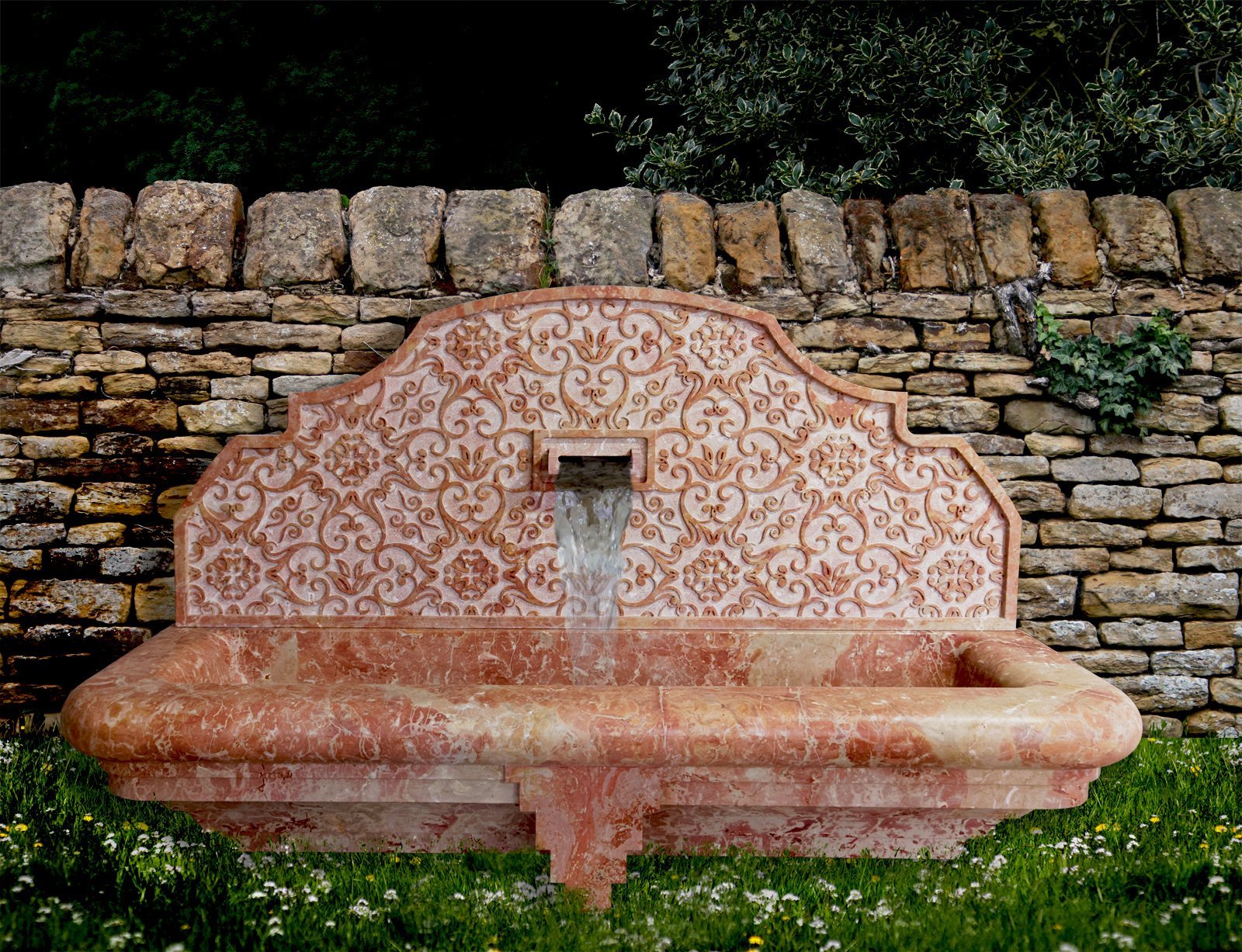 Fontana da parete in 2 elementi in marmo sicilian rose